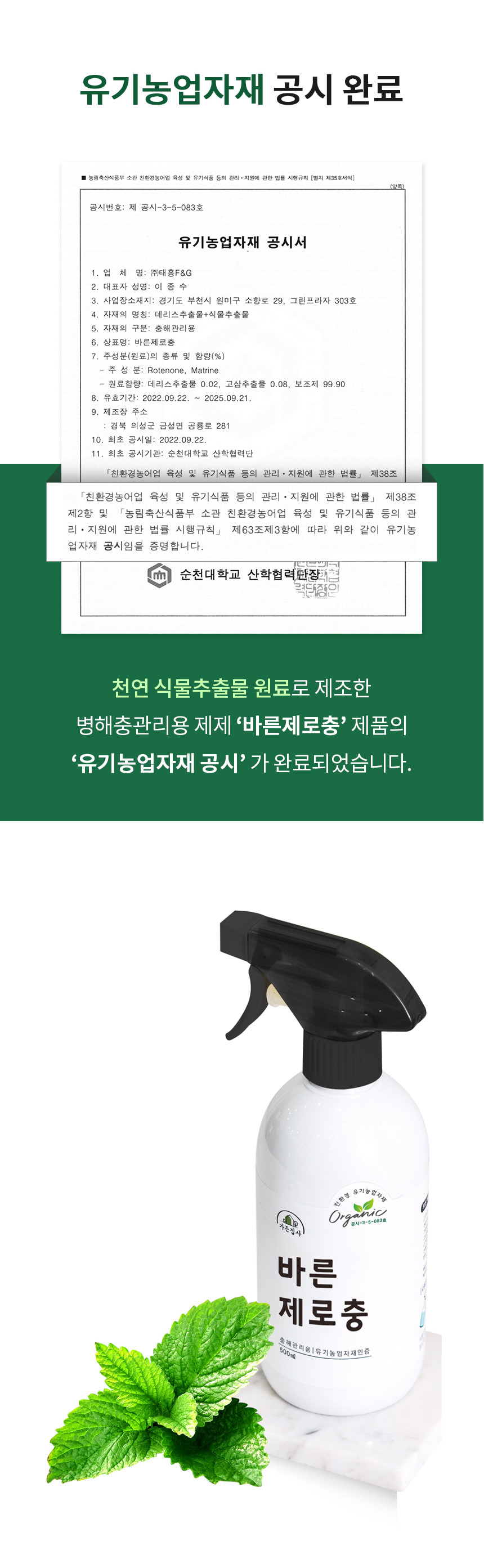 > 세경팜 천연 추출물 식물관리제 바른제로충 500m