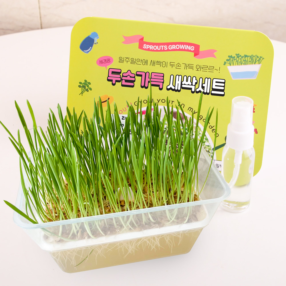 - 세경팜 두손가득 새싹재배 세트 새싹 캣글라스 키트 밀싹 재배기+씨앗+분무기