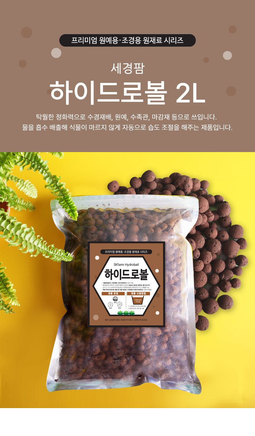 세경팜 하이드로볼 2L 황토볼 분갈이 수경재배소일 화분마감재