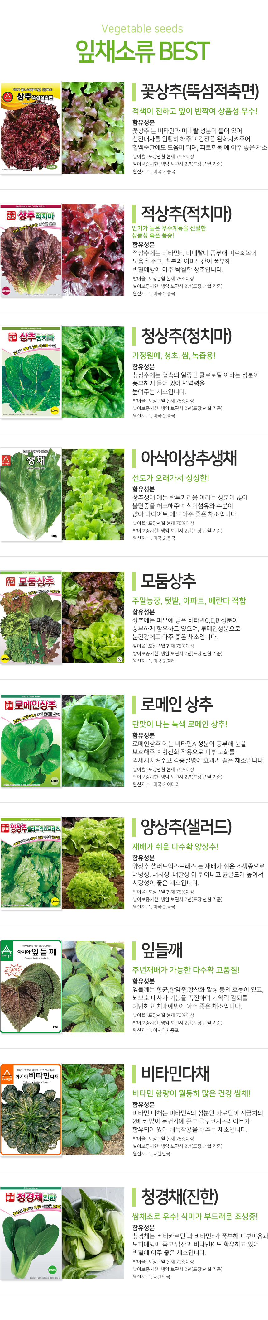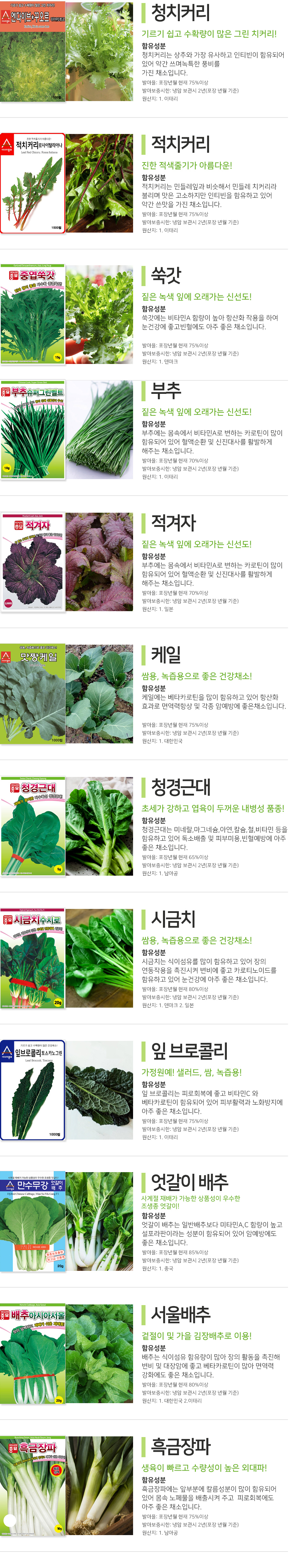 > 잎채소 여러가지 씨앗 모음 (씨앗선택)